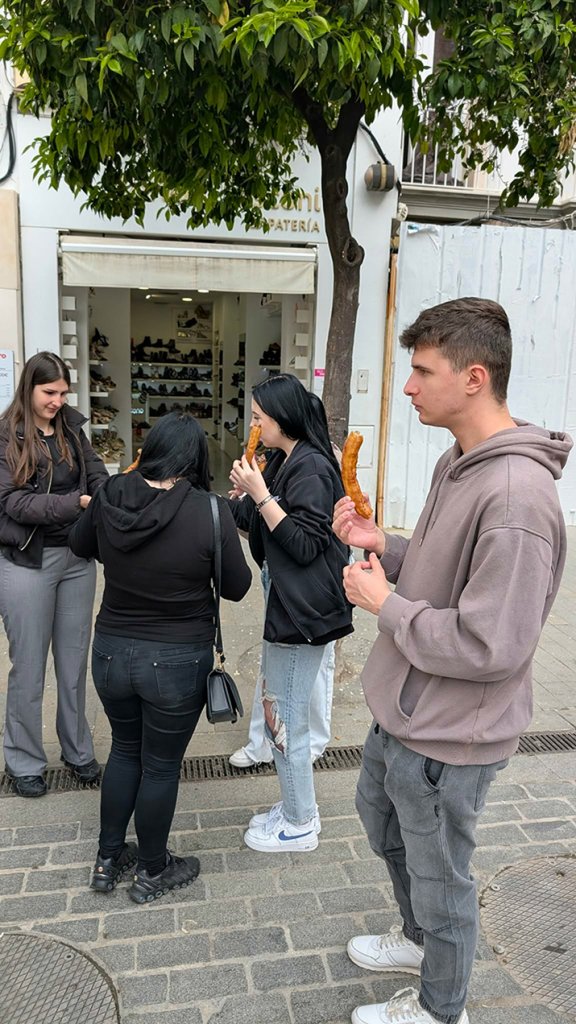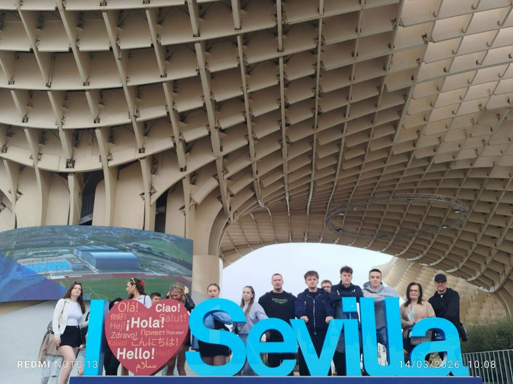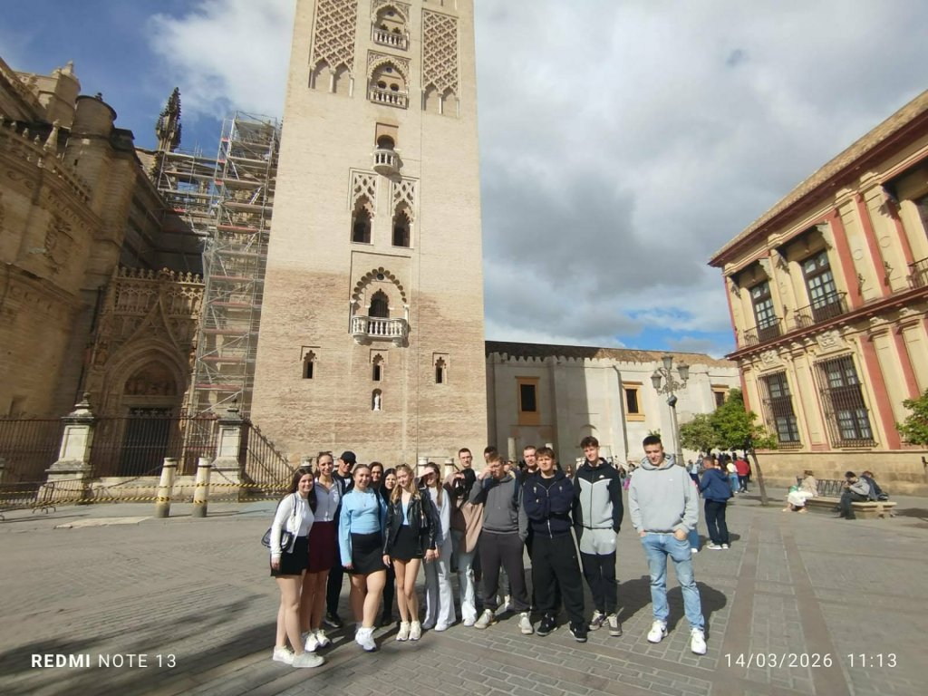 Po intensywnym tygodniu praktyk w zakładach pracy w Hiszpanii uczniowie ZSS-U mieli okazję odpocząć i jednocześnie lepiej poznać Andaluzję. W sobotę wybrali się na spacer po Sewilli z przewodniczką Irene. Podczas wspólnego zwiedzania uczniowie odkrywali uroki miasta – podziwiali jego zabytki, poznawali ciekawostki z historii oraz mogli poczuć wyjątkową atmosferę stolicy regionu. Nie zabrakło także okazji do spróbowania lokalnych przysmaków, które są ważną częścią andaluzyjskiej kultury.