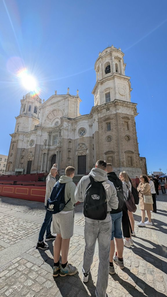 Niedziela była natomiast dniem wycieczki do Kadyksu – jednego z najstarszych miast w Europie. Uczniowie spacerowali po jego urokliwych uliczkach, poznawali historię miasta oraz odwiedzili najważniejsze i najbardziej charakterystyczne miejsca. Po części poznawczej przyszedł czas na zasłużony odpoczynek nad Oceanem Atlantyckim. Słońce, morska bryza i piękne widoki stworzyły idealne warunki do relaksu.